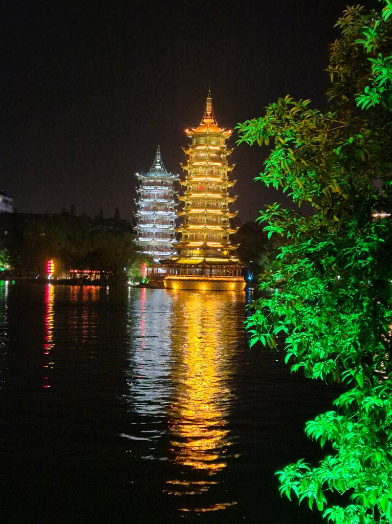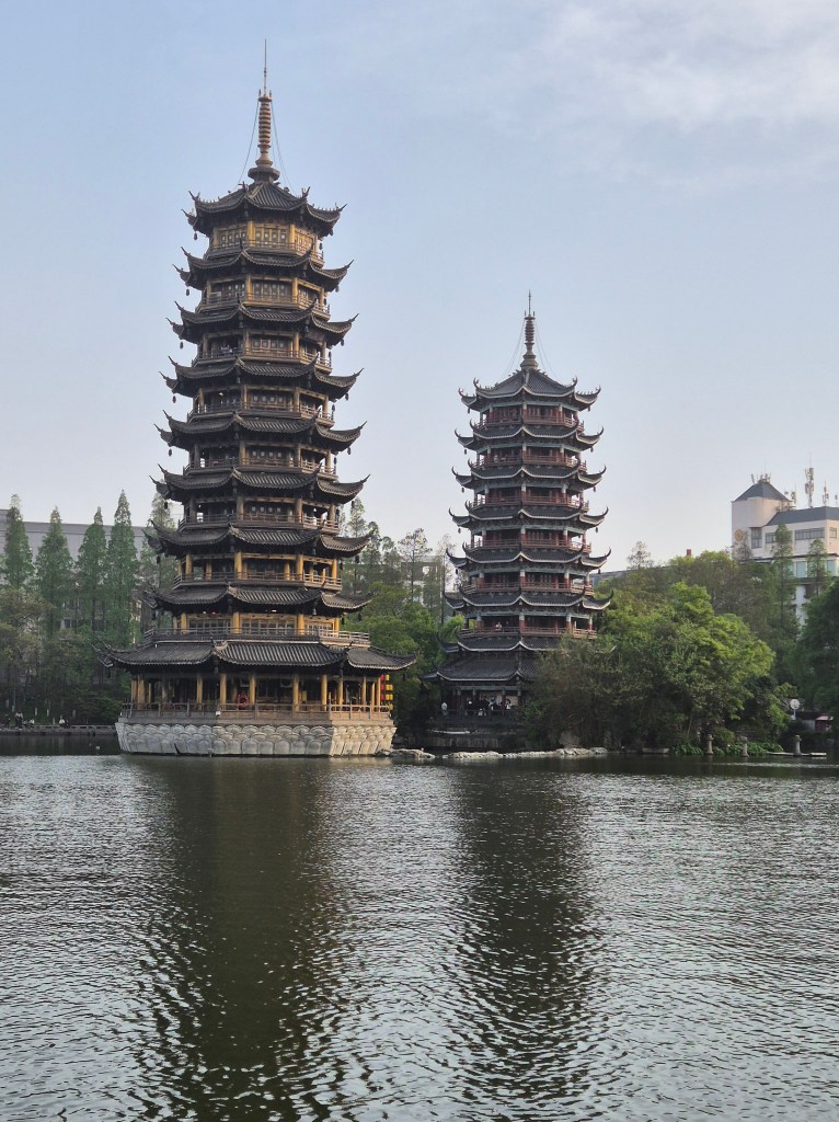 One of the main attractions are the Sun and Moon pagodas. Originally built in the Tang dynasty in the mid 7th century they were reconstructed in the year 2000 when the lake was drained and the original foundations were uncovered.