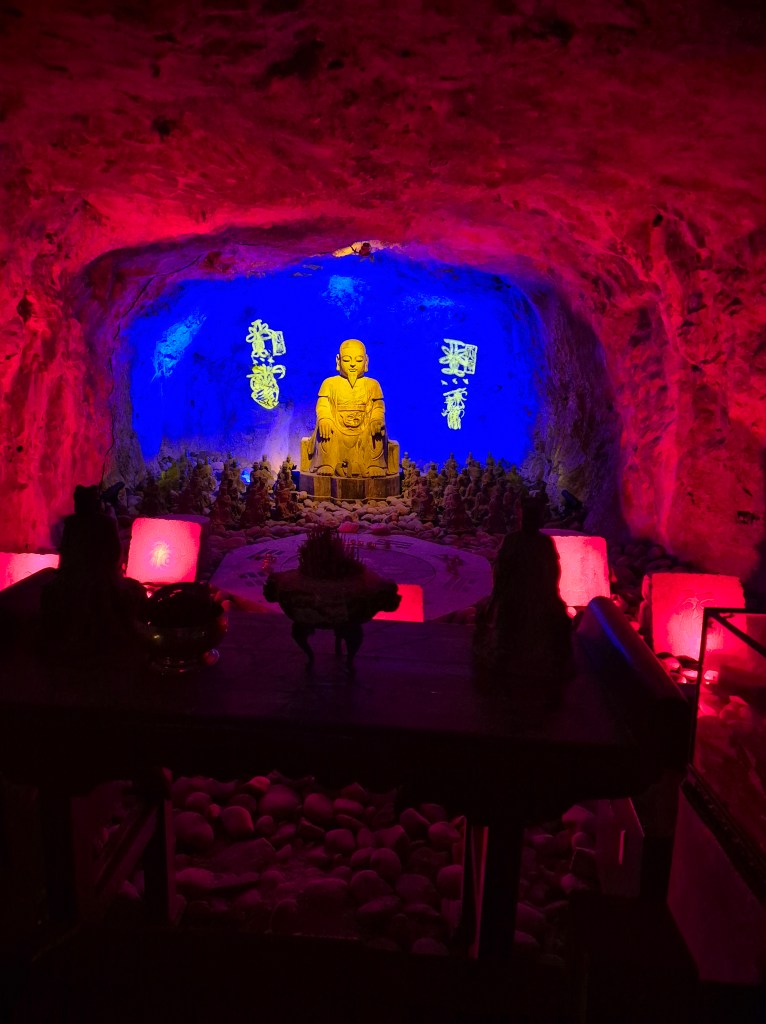 The Sun Pagoda is the tallest bronze pagoda in the world and is one of the few pagodas in the world that has an elevator. The Moon Pagoda has an octagonal base, is coated with glazed tile, has seven stories, and is 35 m (115 ft) tall. A tunnel under the lake connects them and where there was a small display of relics from the original pagodas. The entrance fee was only 35Yuan each, (about £3.50).