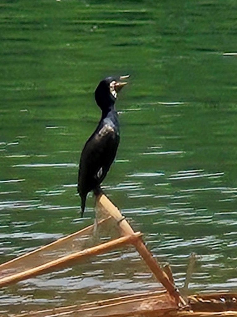 A traditional fisherman on his bamboo raft with his tame cormorants. The birds have a string around their neck and when they catch a small fish they eat it but if they catch a lager fish that they can’t swallow they bring it back for the fisherman.