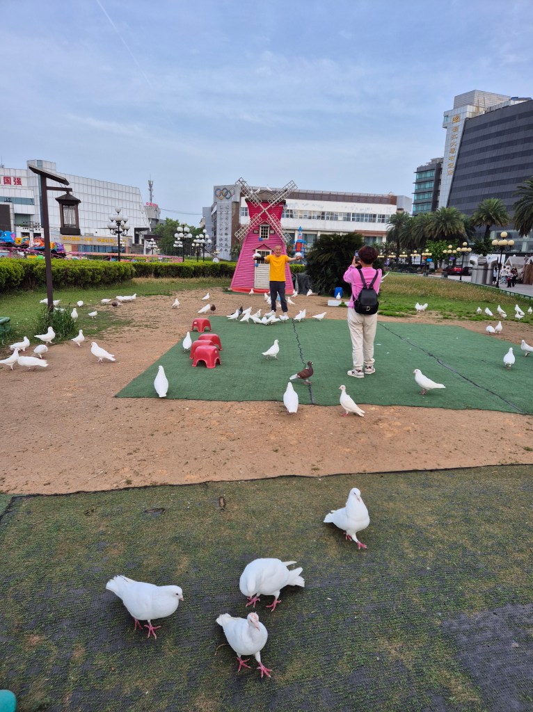 On the far side of the square was an area of childrens rides and a large number of tame doves that lived in this windmill.