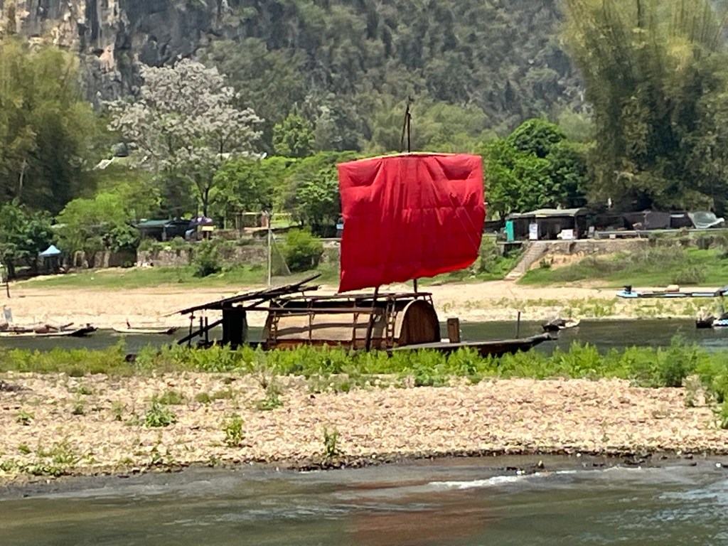 Before long our flotilla was cruising past the karst mountains where many smaller rafts were also enjoying time on the river.