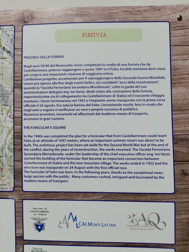 You may have noticed in a previous photo that the railway station in Castellammare has another purpose, it is also the lower station for the cable car to the top of Mount Faito. So in a reckless moment of haste I purchased a return ticket and entered the cable car station.
